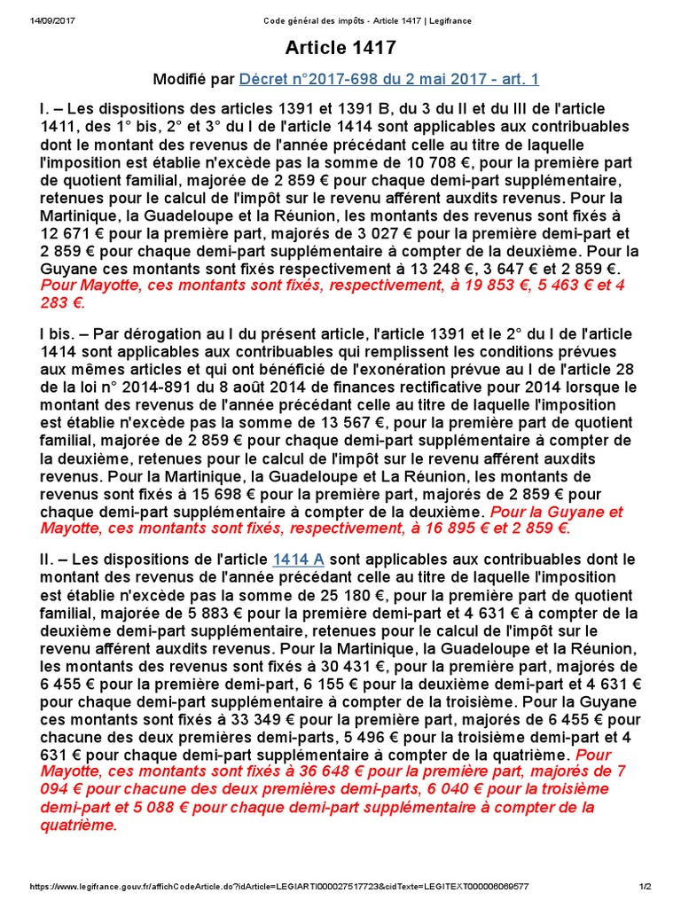 Aux termes du i de larticle 1417 du code général des impôts cgi les dispositions de larticle 1391 du cgi de larticle 1391 b du cgi du 3 du ii et du iii de larticle 1411 du cgi et des 1 bis 2 et 3 du i de larticle 1414 du cgi sont applicables aux contribuables dont le montant des revenus de lannée précédant celle au titre de laquelle limposition est établie nexcède. Article 1414 du code général des impôts i. Loi n 2015 1785 du 29 décembre 2015 de finances pour 2016 art. 1390 v code général des impôts cgi. Les cookies nous permettent de personnaliser les annonces. R2563 4 1 v code général des impôts annexe 3 cgian3.