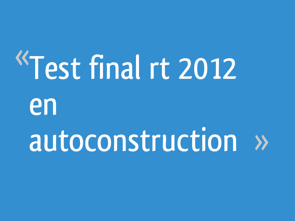 Bonsoir rassurez vous rien de mortel pour la rt 2012. La rt 2012 permet par ailleurs de saffranchir dune mesure systématique en fin de travaux pour les bâtiments ayant suivi une démarche qualité agréée par le ministère en charge de la construction selon la procédure décrite en fonction du type de bâtiment soit dans lannexe vii de larrêté du 26 octobre 2010 soit dans lannexe vii de larrêté du 28 décembre.