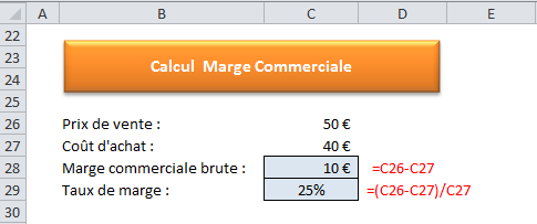 La marge commerciale dune entreprise est un indicateur financier très important notamment dans les activités de négoce. Définition et formule de calcul. Cest le taux le plus utilisé dans le calcul des pourcentages de marge. La marge mesure le profit direct brut généré par la vente dun produit ou dune prestation. Marge brute taux seuil de rentabilité marge brute et taux de marge. Calculer une marge et un taux de marge.