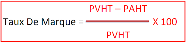 Par exemple pour une marchandise achetée 7500 ht et revendue 12000 ht le taux de marque est de 3750. Taux de marque.