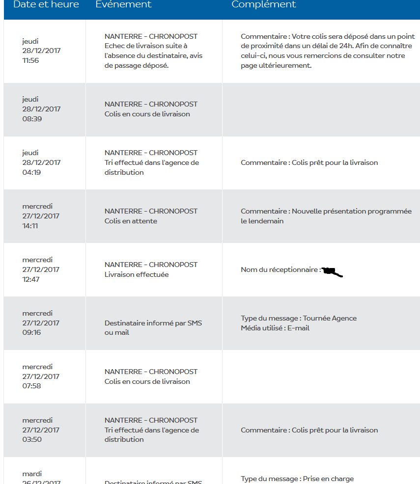 Lexpertise chronopost cest aussi pouvoir suivre en temps réel lexpédition de votre colis vers chaque destination en france comme à linternational. Rien de plus facile. étape par étape vous êtes informés en temps réel de la livraison réalisée en seulement 2 jours dans le relais pickup de votre choix meilleur délai indicatif donné en jours ouvrés. Chronopost suivi du colis la filiale du groupe français la poste a su se faire une place importante dans le marché très concurrentiel et en évolution constante. Pour connaitre étape par étape lacheminement de votre colis chronopost il vous suffit dentrer dans le champ ce dessus votre numéro de colis ou votre numéro davis passage. Retirez vos colis en quelques secondes grâce à notre réseau de plus de 300 consignes en france disponibles 7j7 24h24.