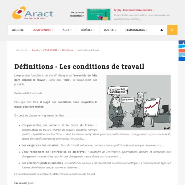 Depuis la dernière enquête nationale sur les conditions de travail ct rps réalisée en 2016 les équipements numériques utilisés au travail ne cessent de se diversifier. Définition condition de travail signaler un problème. Condition de travail n 1. Facteurs physiques sociaux et administratifs tenant au milieu dans lequel un travailleur exerce son activité professionnelle. Les conditions de travail sont constituées de lensemble des éléments permettant lexercice dune activité professionnelle. Définition condition de travail dans le dictionnaire de définitions reverso synonymes voir aussi sous conditionêtre en conditionmise en conditioncondiction expressions conjugaison exemples.