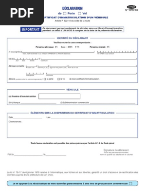 Formulaire à remplir et à faire valider par le service compétent mairie commissariat ou gendarmerie selon les cas. Et de rectification des données auprès des organismes destinataires du formulaire. Formulaire cerfa 13753 04 de déclaration de perte ou de vol dun certificat dimmatriculation. La perte le vol de mon certificat dimmatriculation. Vous devez remplir un formulaire de déclaration de perte lorsque vous avez perdu votre passeport. Toute fausse déclaration est passible des peines prévues par les articles 441 6 et 441 7 du nouveau code pénal.