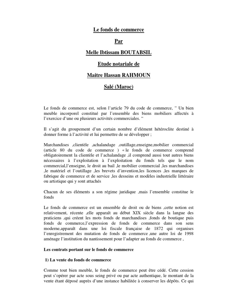 Le fond de commerce. Ainsi la france le maroc réf. Lacheteur ne reprend ni les dettes ni les créances du cédant sauf si lacte de vente le prévoit expressément décision de la chambre commerciale de la cour de cassation du 7 juillet 2009 n05 21322. Le fonds de commerce est composé déléments corporels tels que le mobilier loutillage et déléments incorporels tels que la clientèle. Le fonds de commerce est une notion juridique existant dans certains états. En effet le commerçant qui ne fait que bénéficier de la clientèle des autres commerces situés autour de lui ne peut pas être considéré comme titulaire dun fonds de commerce. Si lacquéreur perçoit un potentiel important il sera prêt à mettre le prix.