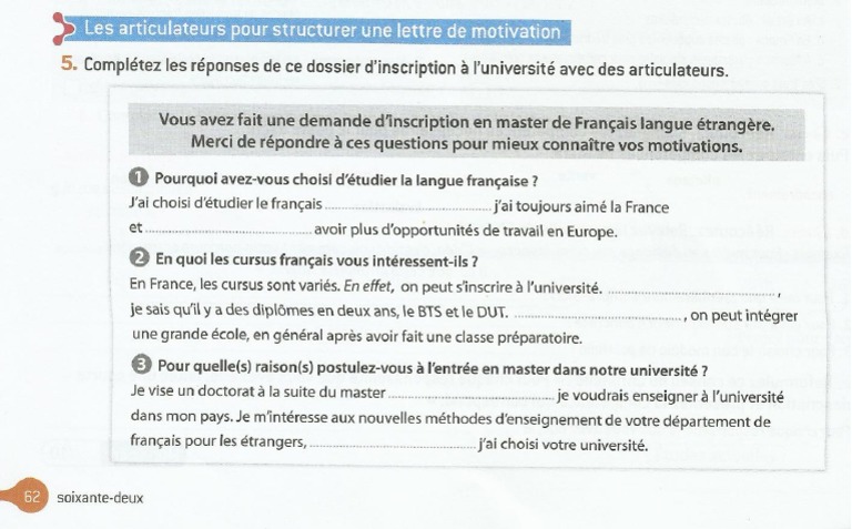 Lettre de motivation francais. Exemple de lettre de motivation pour une formation et exemple de lettre de motivation pour un emploi. Si le cv reste un élément clé dune candidature la lettre de motivation constitue un pont relationnel qui peut savérer déterminant quant à lobtention dun entretien. Le téléchargement de cette lettre de motivation est totalement gratuit. 15 exemples de lettres de motivation afin de vous aider à rédiger votre lettre de motivation. La lettre de motivation complète votre cv et. Vous trouverez dans cette fiche un exemple de lettre de motivation à télécharger.