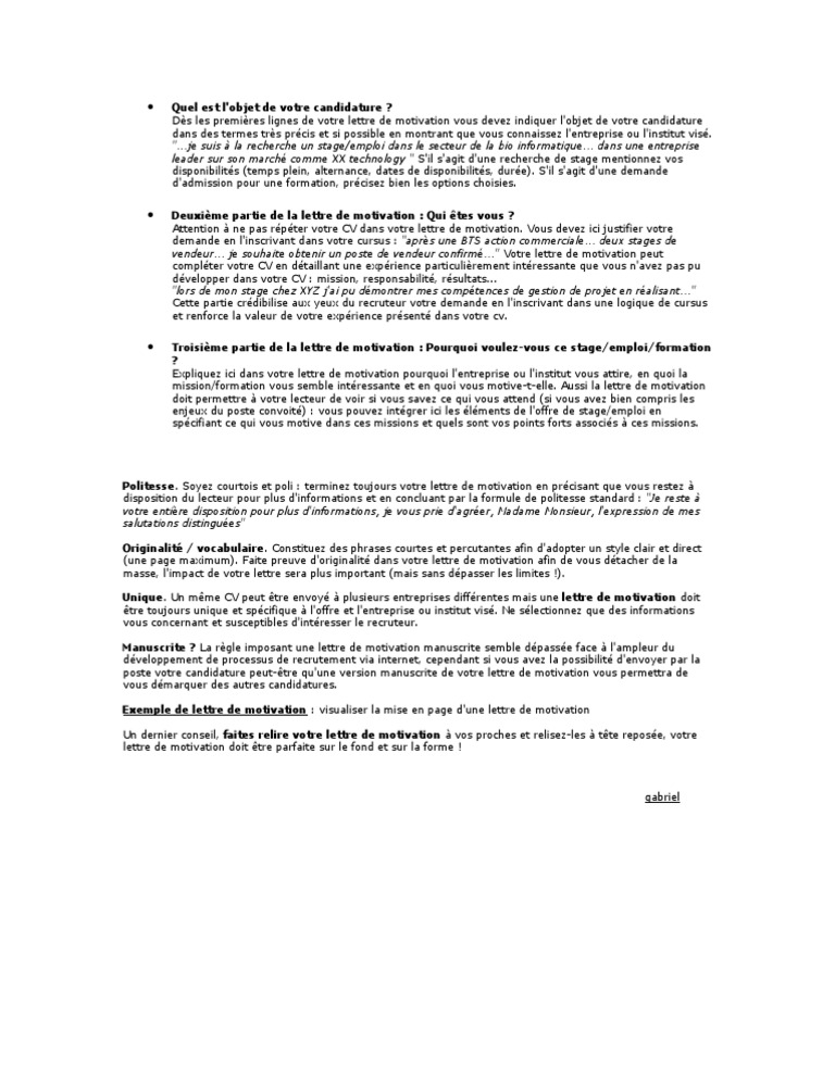 Mre Redaction De La Lettre De Motivation