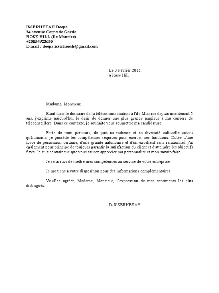 Lettre De Motivation De Teleconseiller Modele Gratuit De Lettre