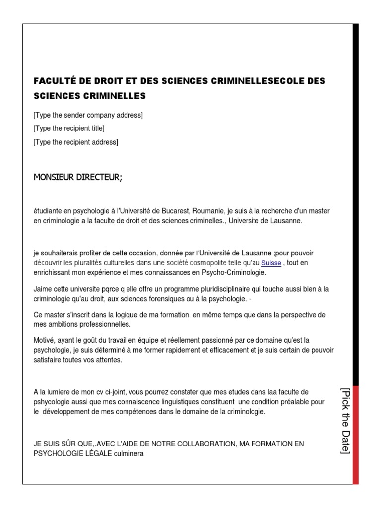 Exemple de lettre de motivation pour un master pour postuler à un m1m2 voici un modèle de lettre de motivation afin de compléter votre dossier dinscription. Modèle de lettre à télécharger gratuit et prêt à remplir avec wordtélécharge les dès maintenant et utilise celui que tu préfères.