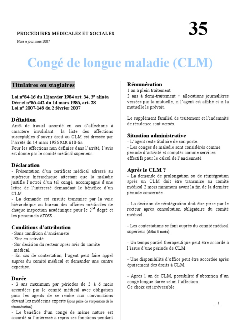 On les appelle des affections longue durée ou ald on parle aussi daffections exonérantes. Définition la maladie de longue durée ou affection de longue durée nécessite un traitement durable dans le tempsla caisse primaire dassurance maladie répertorie 30 maladies de longue durée ald30 donnant le droit à une prise en charge intégrale des soins après lacceptation dun protocole thérapeutique. Un congé de longue durée cld peut vous être attribué après avis obligatoire du comité médical si vous êtes atteint dune maladie grave cancer maladie mentale. Le dispositif juridique des ald est principalement inclus aux articles l. Congé pour longue maladie et arrêt maladie de courte durée. Cette absence sentend prolongations comprises dès lors quelles suivent immédiatement larrêt de travail initial.