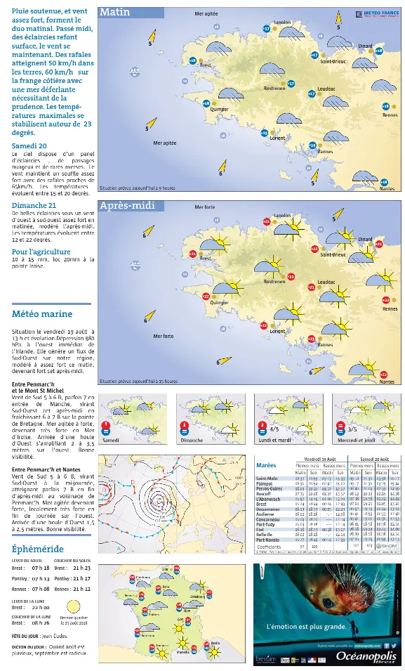 Météo de la bretagne au mois daoût 2020. Les prévisions météorologiques pour les départements de la région bretagne.