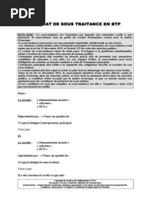 Contrat De Sous Traitance Simplifie Du Batiment Mac Pc