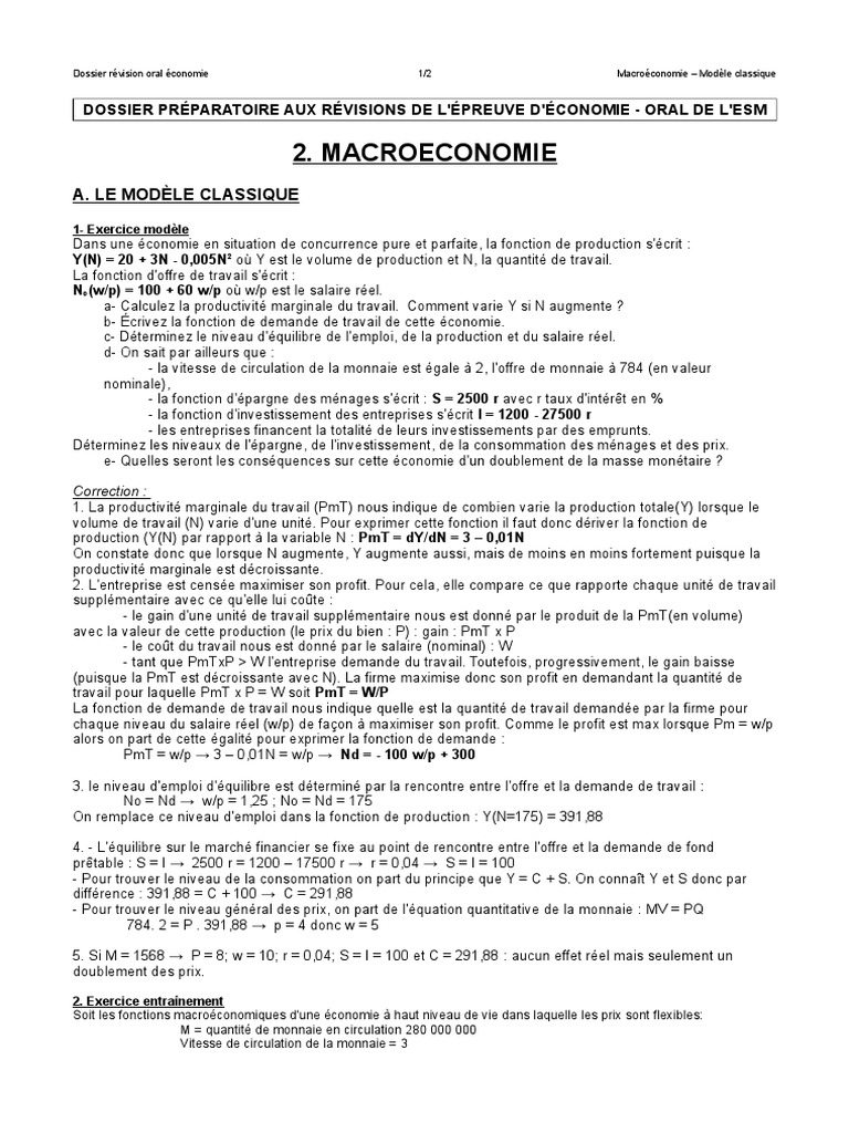 Le Modele D Offre Globale Et De Demande Globale Uns Studocu