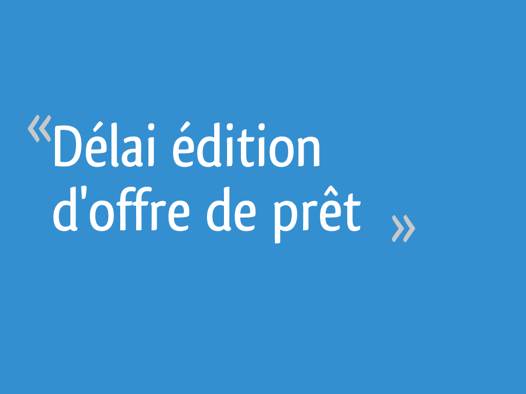 Offre de pret delai. Renvoi de loffre de prêt. Les candidats à lachat dun logement qui souhaitent financer en tout ou partie leur acquisition par un prêt immobilier disposent dun délai minimal de réflexion de dix jours pour examiner loffre de prêt transmise par la banque. à partir du 11ème jour vous êtes en droit daccepter ou de refuser loffre auprès de votre établissement de crédit. Loffre de contrat de crédit immobilier est adressée par la banque gratuitement à lemprunteur sur papier envoi postal par lettre recommandée avec avis de réception le plus souvent ou sur un autre support durableelle ne doit pas être remise de la main à la main. Elle vous permet de connaitre combien coûte le crédit puisquelle vous indiquera notamment la somme totale des intérêts du prêt. Avant daccepter loffre vous devrez respecter un délai de réflexion incompressible.