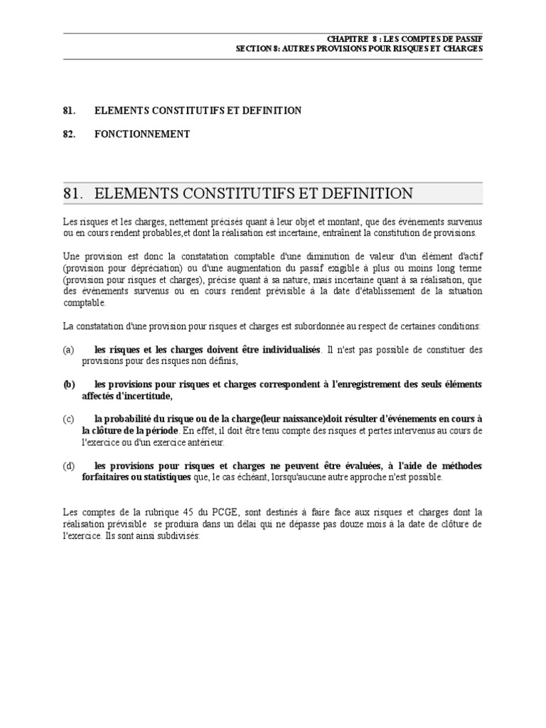 Les provisions pour risques et charges dans les états de synthèse. Par une dette inscrite dans le haut du passif du bilan entre les capitaux propres et les dettes et par une charge dans le compte de résultat même si cette charge nest pas dépensée.