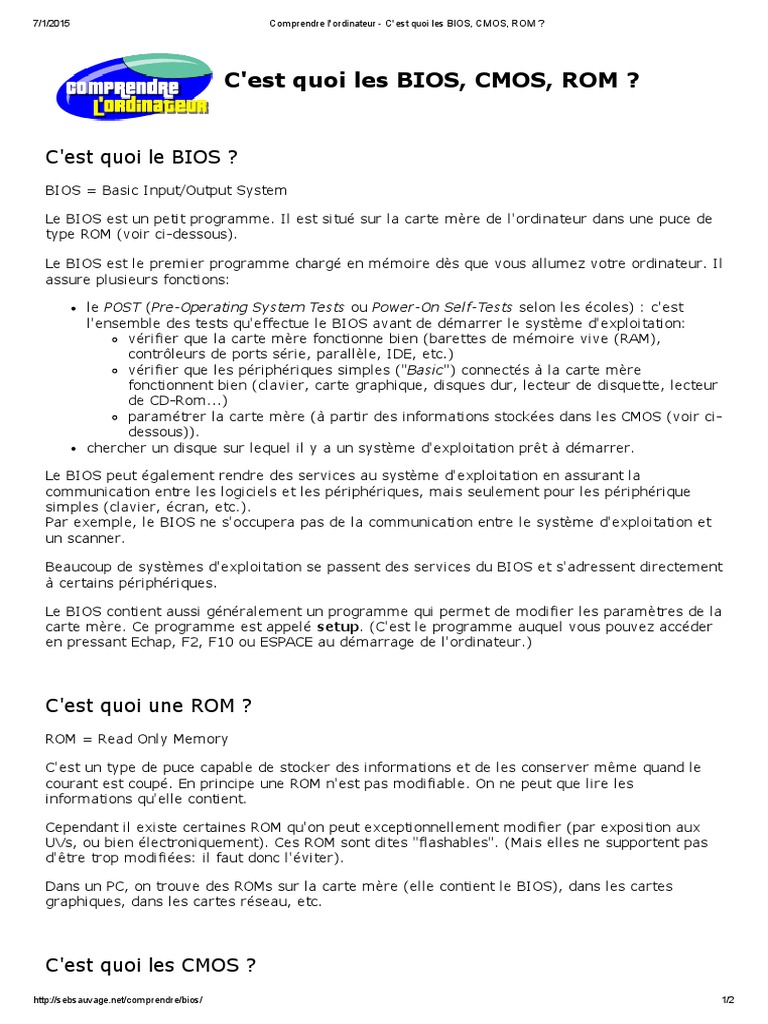 Le post pre operating system tests ou power on self tests selon les écoles. Bios signifie système de sortie dentrée de base ce qui signifie quelque chose comme système dentrée et de sortie de base. Vous avez aimé cet article intitulé quest ce que. Le bios est un petit logiciel qui fait office de gérant de la carte mère. Depuis lintroduction des pc compatibles ibm en août 1981 le bios émet les premières commandes au. Le bios originel était conçu pour les systèmes cpm et se limitait à lépoque à la gestion des entrées sorties comme son nom lindique.