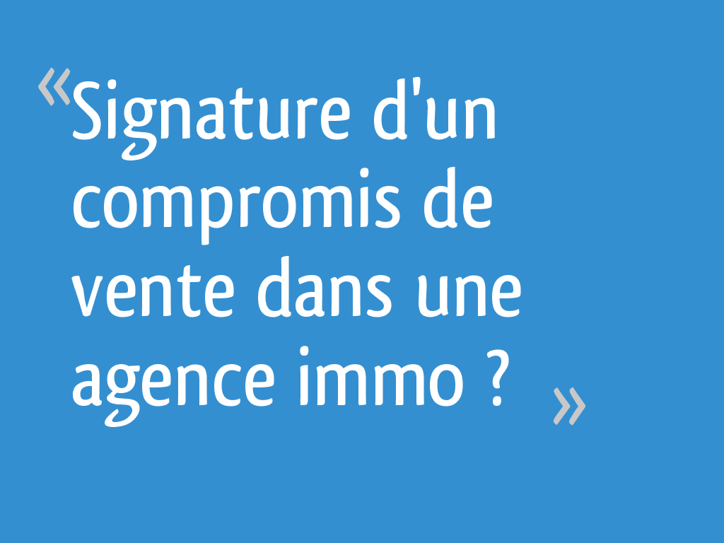 Signature du compromis de vente à lagence immobilière. Le compromis de vente est un avant contrat passé entre le vendeur et lacheteur dun bien immobilier trois mois environ avant la signature de lacte de vente définitif. Bien gérer son timing. Si le compromis de vente engage lacquéreur. Létape du compromis de vente se profile à partir du moment où lacheteur et le vendeur se sont mis daccord sur le prix et sur la chose comme le dit le code civilconcrètement il intervient une fois que loffre dachat ou une des contre propositions a été acceptée par lautre partie à lécrit ou à loral. Si la signature de lacte authentique dachat ne peut se faire sans un notaire le compromis de vente pour sa part est tout à fait réalisable en agence lagent immobilier disposant de modèles de compromis en cohérence avec la loi.