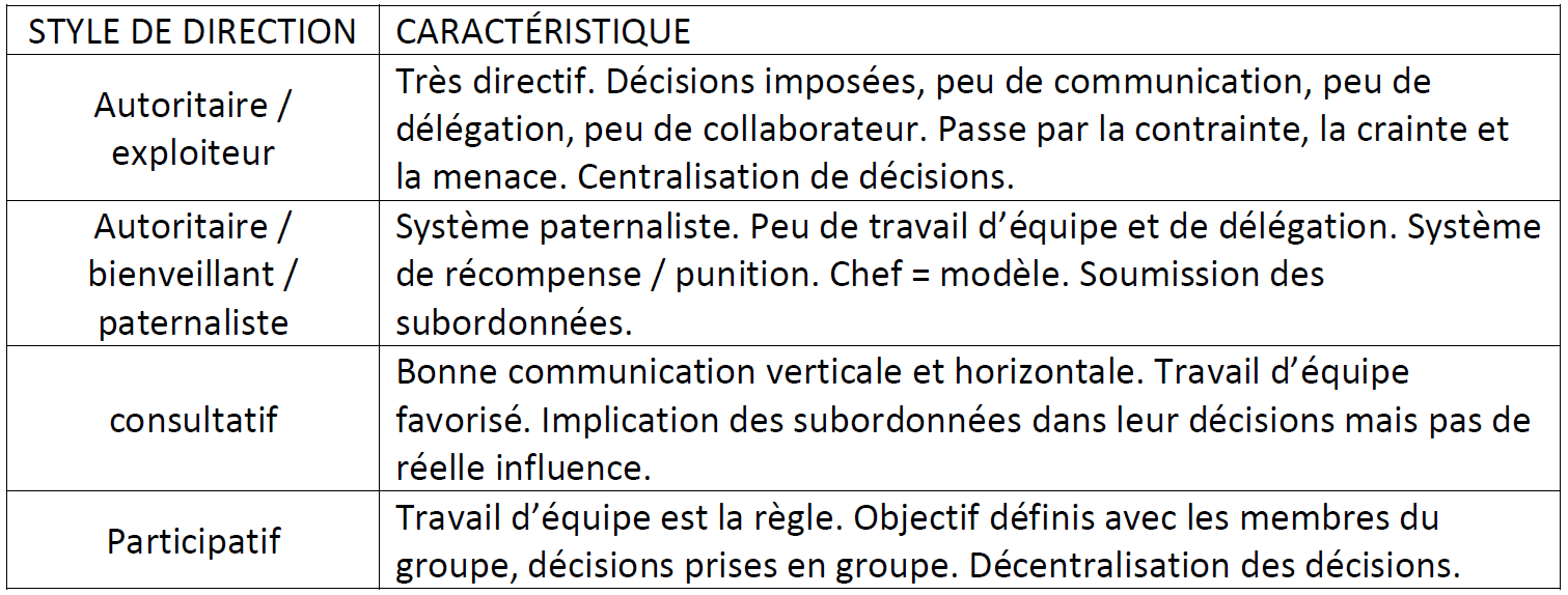 Style de management participatif. Le management participatif peut revêtir plusieurs aspects. Ce mode de management est essentiellement fondé sur une culture qui prône la délégation du pouvoir la communication. Style de management participatif. Prendre des décisions communes peut savérer couteux et chronophage. Alors que ce style de leadership conduit à une meilleure participation de tous les employés il y a aussi des inconvénients. Le management participatif risque dêtre mal perçu par les employés habitués à un autre style de management comme le style directif par exemple.