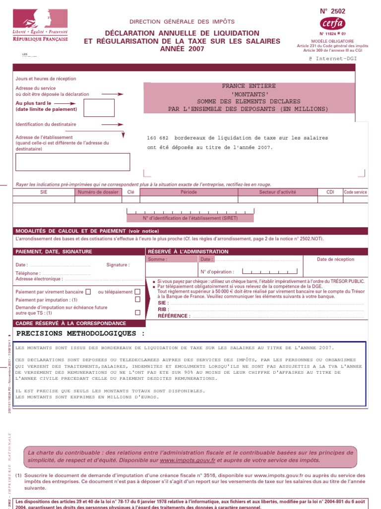 Taxes sur les salaires. Taxe due 4000 taxe due à raison des rémunérations payées pendant lannée en cours versée dans les 15 premiers jours de lannée suivante. Ce document na pas de valeur légale et na pour but que de donner une approximation du salaire net après impôt. Taxe sur les salaires acquittée en 2017. La taxe sur les salaires est acquittée par tout employeur établi en france qui nest pas soumis à la tva au cours de lannée de versement des rémunérations concernées ou qui lest sur moins de 90 de son chiffre daffaires. A partir de 10 001 de taxe sur les salaires payée lannée précédente. Taxe dapprentissage contribution unique à la formation professionnelle.