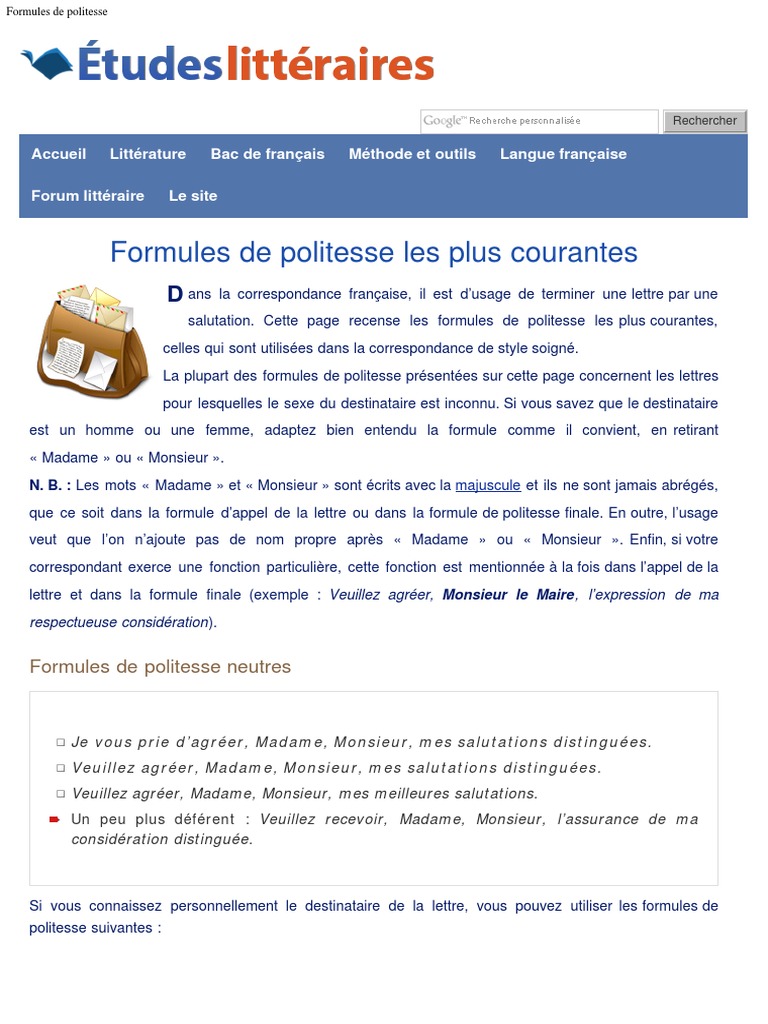 Veuillez agréer madame monsieur mes salutations distinguées. Veuillez agréer maître l. Veuillez agréer madame monsieur lexpression de mes salutations distinguées je vous prie dagréer madame monsieur lexpression de mes sentiments distingués. Formules de politesse formelles pour une lettre de motivation si le vouvoiement est la première des politesses dans la rédaction dune lettre de motivation voici quelques formules qui pourront vous aider à obtenir un entretien avec votre futur employeur. Je vous prie dagréer madame monsieur mes respectueuses ou mes sincères salutations. Agréez monsieur lexpression de mes sentiments distingués.